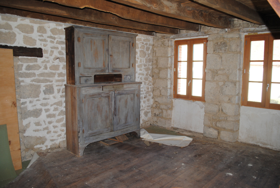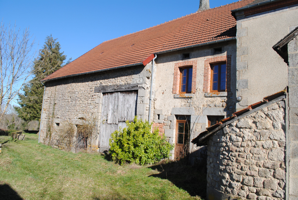 Dans un bourg très calme, à 17 km d'Aubusson et 10 de Chénérailles , Maison à finir de rénover, comprenant au rez-de-chaussée une entrée, cuisine et cellier, séjour, grand salon, salle d'eau, wc. Au 1er étage, 4 chambres, dressing, grande chambre double. Attenant une grange de 90 m² au sol. Terrain attenant de 3663 m².